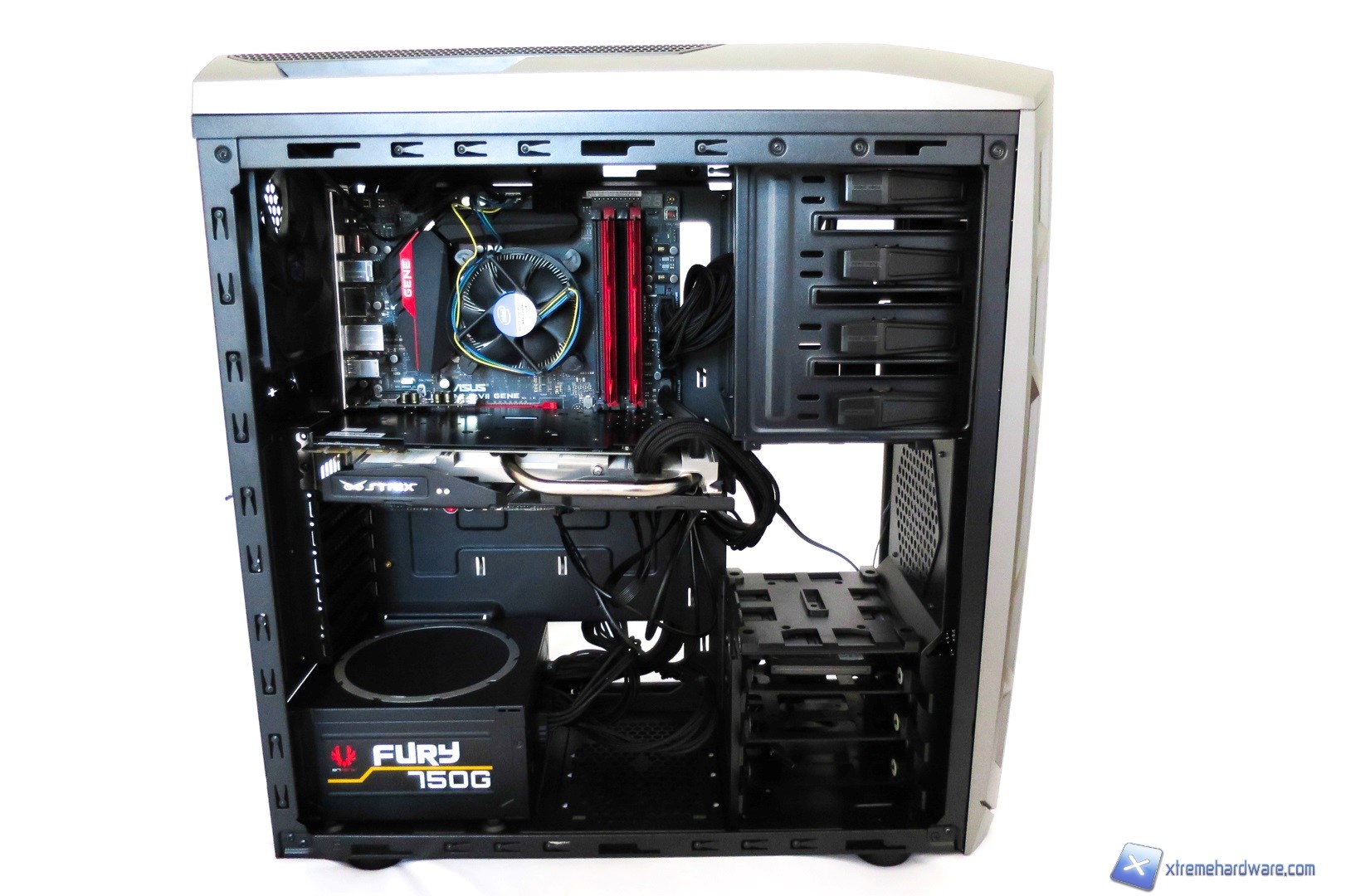 Lo spazio complessivo del Raidmax Narwhal 920 è valido per una configurazione di fascia media senza alcun problemi di installazione. Durante l’installazione del nostro sistema abbiamo dovuto solo rimuovere il cage centrale per gli Hard Disk in quanto il dissipatore della nostra ASUS GTX 970 Strix è leggermente più lungo di 30cm dunque sarebbe cozzato contro tale cage. Rimosso il cage, abbiamo avuto spazio a sufficienza per installare la scheda video ed i relativi componenti senza problemi. I numerosi fori presenti intorno al tray della scheda madre hanno permesso di far passare i cavi anche dopo aver installato i componenti tanto da poter operare con calma anche dopo.