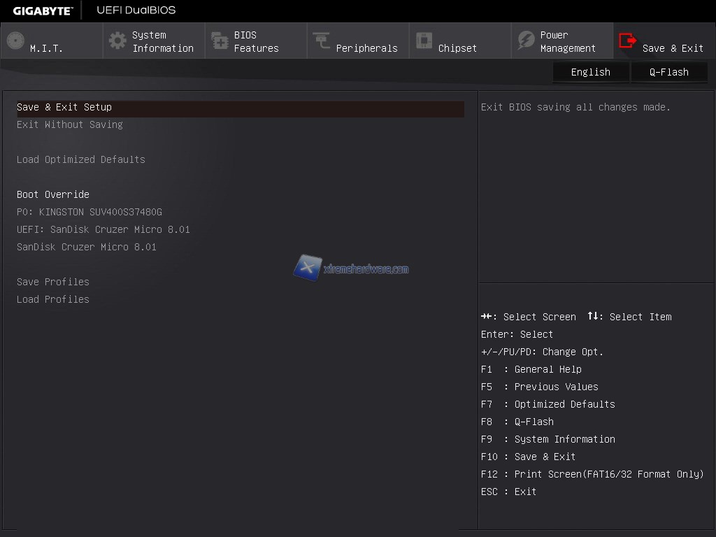 Infine il classico Menù ‘’Save and Exit’’ con cui potremo salvare o meno le modifiche apportate, caricare i valori di Default in caso di problemi o di creare e caricare Profili personalizzati.