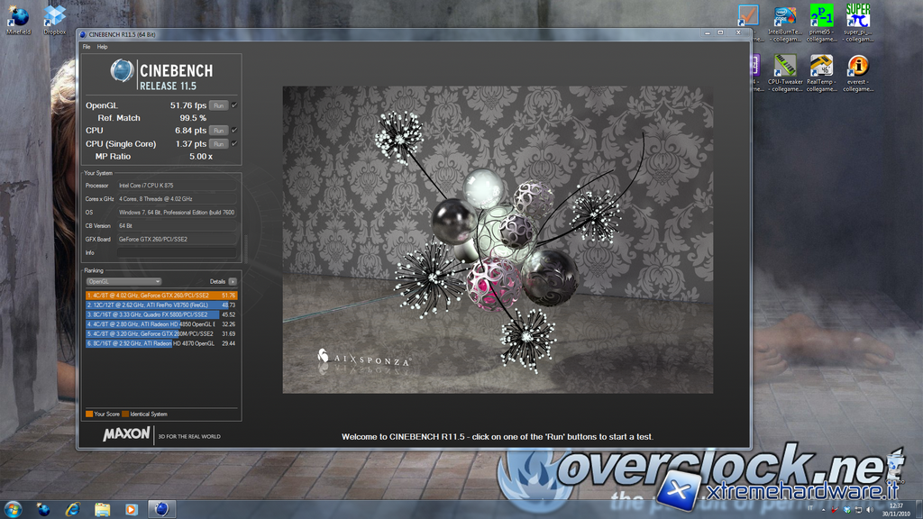 Gli ultimi test preliminari che abbiamo effettuato, invece, concernono le performance di produttività della nostra configurazione di test, quindi abbiamo provveduto ad effettuare due test utilizzando i tool Cinebench e x264 alla frequenza default del sistema e overclockando la CPU a 4000mhz.